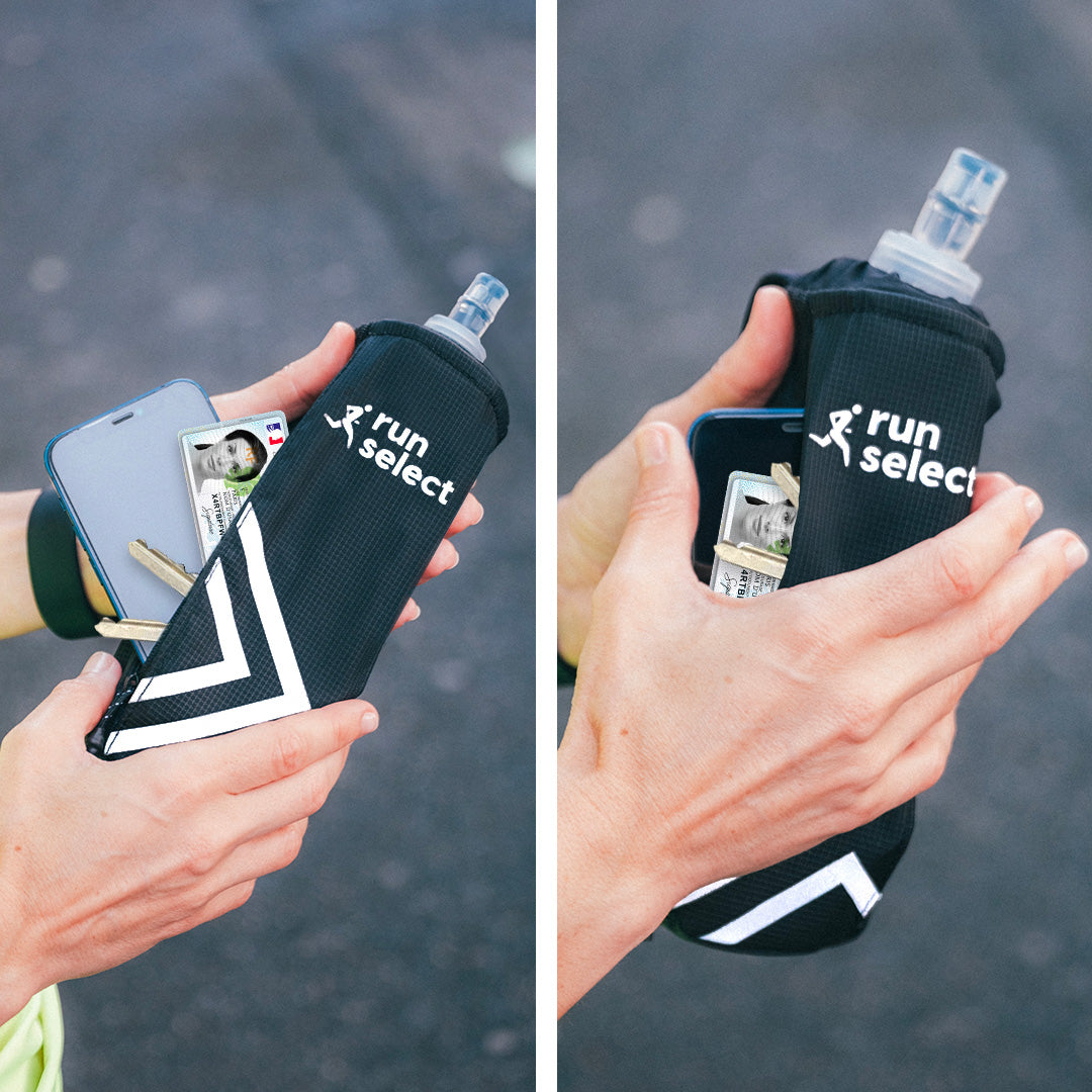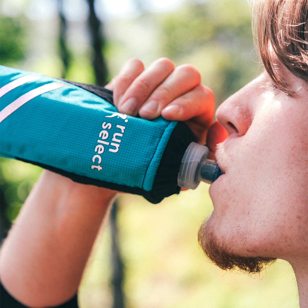Notre gourde de course à pied est conçue pour une utilisation rapide et pratique, avec un embout pour boire sans devoir s’arrêter. Cela aide les coureurs à maintenir leur rythme sans interruption. Un système, sur la gourde Run Select, permet d’éviter de renverser de l’eau : il faut pincer l’embout en caoutchouc, avec ses dents, pour boire lors de sa course.